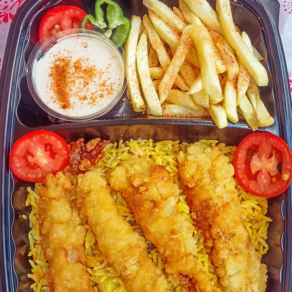إستربس + الأرز البسمتى +بطاطس + سلطة